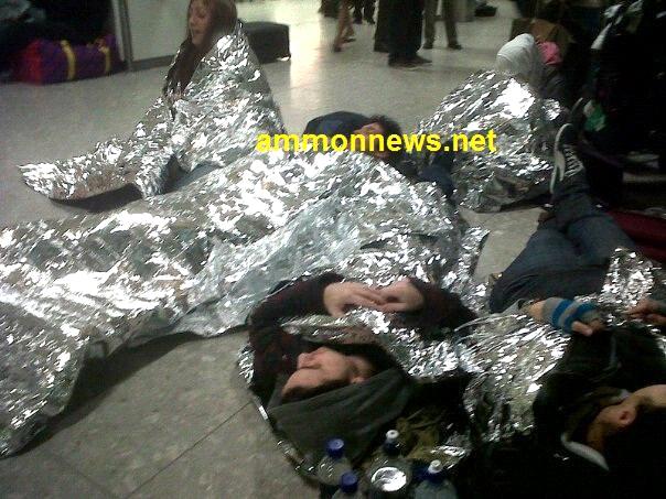 Jordanian passengers have been stranded at the airport since 5 PM Saturday Amman time in the Transit wing, authorities there could not allow them to leave the airport as many of them do not have a Schengen Visa.