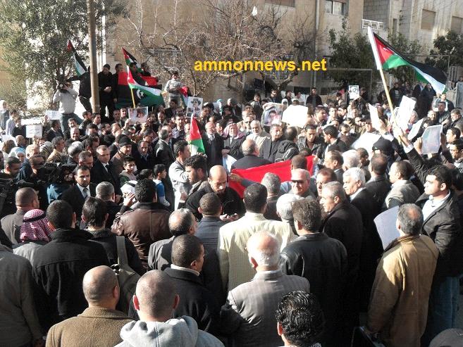 AMMONNEWS - Hundreds of Jordanians on Tuesday afternoon crowded in front of the Libyan Embassy in Amman to express solidarity with the Libyan people in their uprising against Muammar Gaddafi's regime.