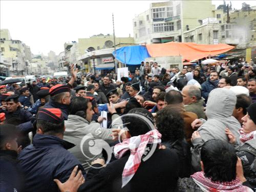 Dozens of pro-reform protestors withstood cold weather conditions and demonstrated following Friday midday prayers near Al Husseini Mosque in downtown Amman, chanting slogans against the government and calling for reforming the regime, alluding to the difficult economic conditions citizens face.