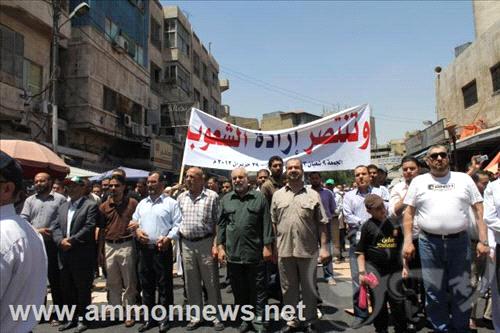 More than 1,000 Jordanians marched in central Amman following the Friday Prayers, urging the government to return the prices of electricity, fuel and other commodities to what they were before and find other ways to tackle the huge budget deficit instead of putting the entire burden on the nation.