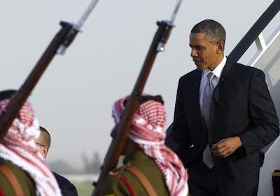 Obama arrived in Jordan following a trip to Tel Aviv where he met with Israeli Prime Minister Benjamin Netanyahu, followed by a visit to Ramallah where he met with Palestinian leader Mahmoud Abbas.