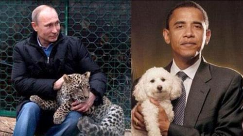 Dmitry Rogozin, who posted a picture showing Russian President Vladimir Putin holding a leopard alongside a photo of Obama holding a fluffy little white dog, wrote: “We have different values and allies”.
