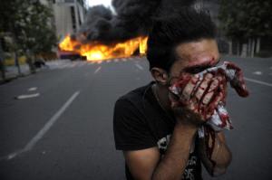 Photo: (afp)A injured supporter of defeated presidential candidate Mir Hossein Mousavi during riots in Tehran