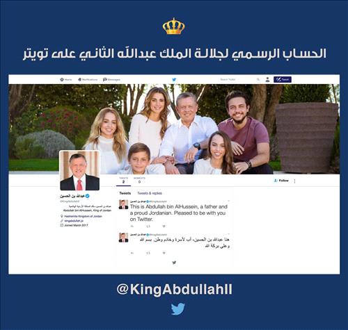 Ammon News - AMMONNEWS - His Majesty King Abdullah II on Sunday, launched his official account on Twitter.