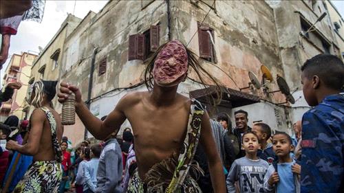 Ammon News - AMMONNEWS - Dressed in sheepskins and spooky masks, young Moroccans dance through the neglected city streets of Sale north of the kingdom’s capital to mark the annual Boujloud festival.