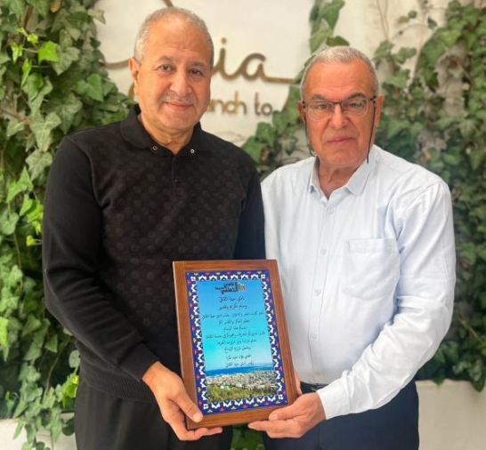The meeting was characterized by a brotherly atmosphere full of intimacy and friendliness, as Rawashdeh welcomed his honorable guest in the most beautiful way, and they exchanged conversations on various cultural affairs, reviewing the reality of the cultural scene in both Jordan and Palestine, discussing the challenges facing intellectuals in both countries, and the role of cultural institutions in spreading knowledge.