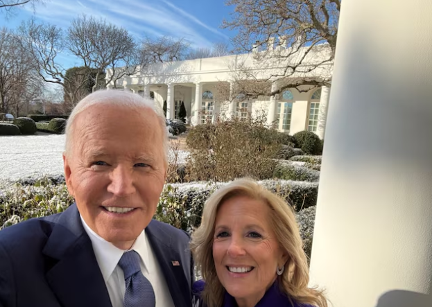 The Bidens welcomed the former and future president into the White House. He walked hand in hand with his wife, First Lady Melania Trump. Earlier today, Joe and Jill shared the final selfie of Biden's term. The pair were all smiles, looking elegant as they prepared for a new political era.