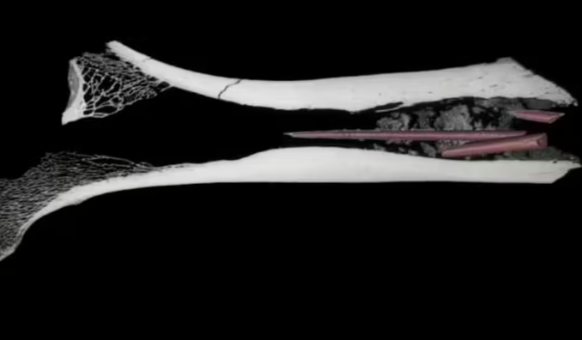 The femur has been in the possession of experts since its discovery in 1983, but a new paper has revealed how X-ray analysis located three arrowheads inside the marrow cavity.