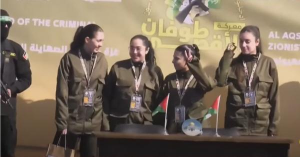 The Palestinian movement Hamas handed four female Israeli soldier hostages over to the International Committee of the Red Cross on Saturday.