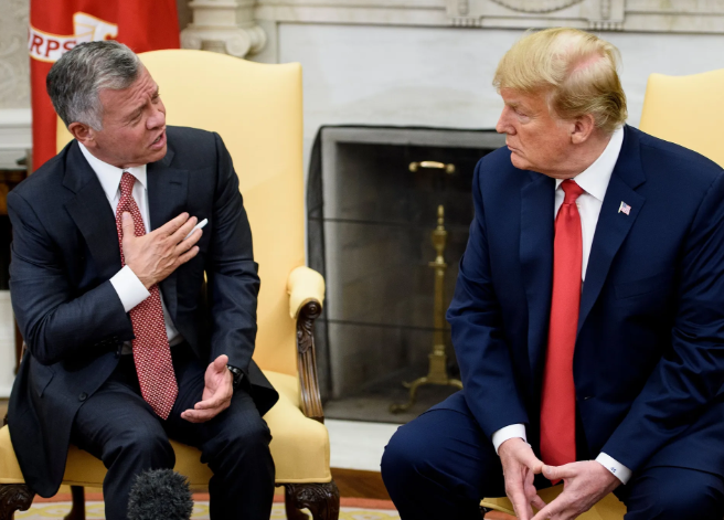 From archive/ His Majesty King Abdullah II speaks to President Donald Trump during a White House visit in June 2018