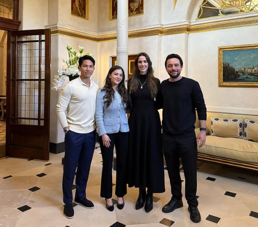 In an Instagram post, the crown Prince posted a photo with Princess Rajwa, Prince Abdul Mateen and Princess Anisha Rosnah, and wrote: "With our dear friends Prince Abdul Mateen and Princess Anisha Rosnah of Brunei."