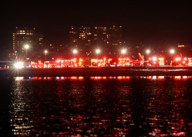 Dozens of police, ambulance and rescue units, some ferrying boats, staged along the river and raced to positions along the tarmac of Reagan airport. Live TV images showed several boats in the water, flashing blue and red lights.