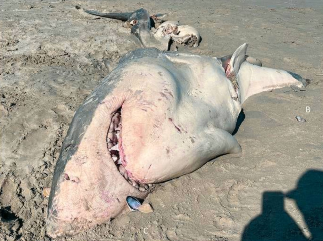 In October 2023, the maimed carcass of a 4.7m great white shark washed ashore near Portland, in southwest Victoria, missing its liver, digestive and reproductive organs.