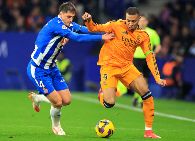 Vinicius Jr appeared to have given Real the lead in the 21st minute after latching onto Kylian Mbappe's pass. However, the goal was disallowed after the Frenchman had fouled Espanyol's Pol Lozano in the build-up.