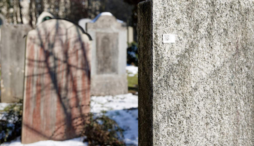 The stickers, which have been put on both old and recent graves, have a QR code that when scanned shows the name of the person buried and the location of their grave in the cemetery.
