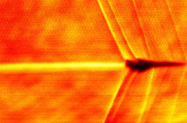 NASA teams on the ground used Schlieren photography to capture the shock waves around Boom Supersonic’s demonstrator aircraft XB-1 as it pushed through the air.