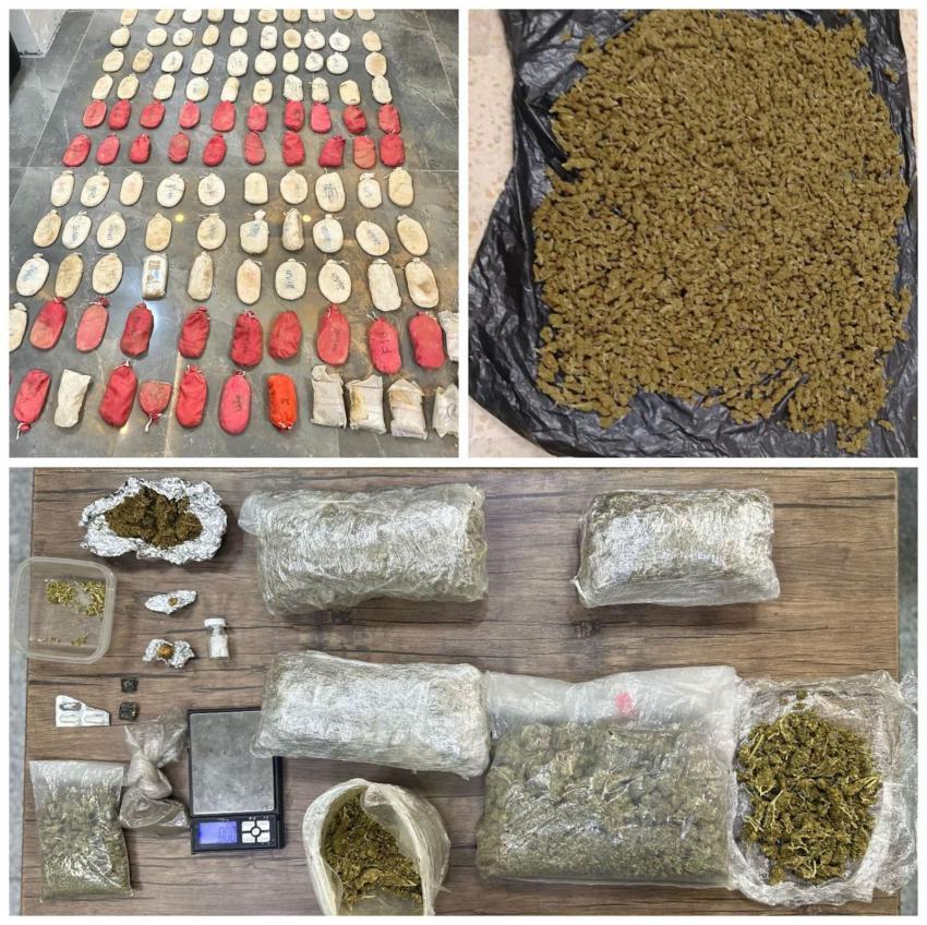In Irbid, a drug dealer was caught using a farm to store narcotics, where authorities seized 9 kilograms of marijuana. In Madaba, a raid resulted in the confiscation of 11 kilograms of hashish. Additionally, a dealer in the Central Badia was arrested with 2 kilograms of marijuana.