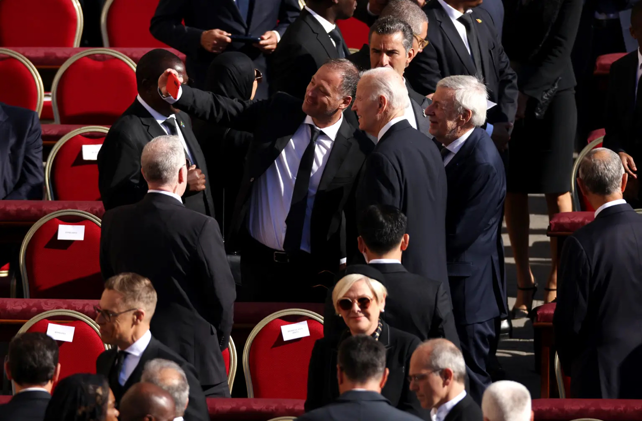 Biden was snapped taking a selfie with another mourner before the funeral service began at 10 a.m. NYP