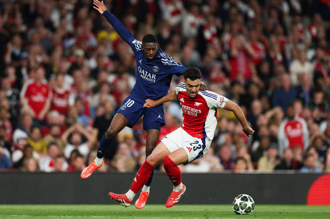 Dembele was proving equally hard for Arsenal to handle, his clever run and pass reaching Desire Doue for a low strike that Raya saved at full stretch.