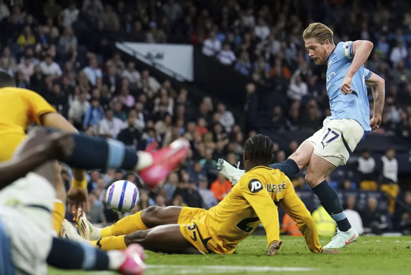 Slightly against the run of play, De Bruyne side-footed home a cut back from Jeremy Doku 10 minutes before halftime in his second-to-last appearance at Etihad Stadium.