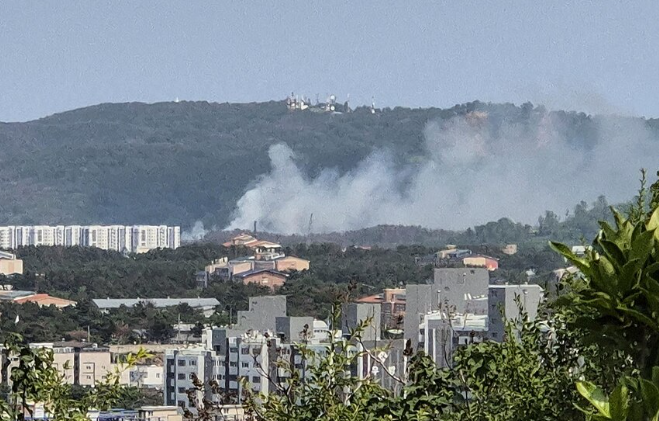 An emergency office in Pohang said that rescue workers and fire trucks were dispatched to the site after receiving reports from local residents that an unidentified aircraft fell onto a hill near an apartment complex and caused a fire. ABC