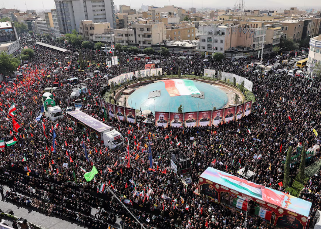 Ammon News - Large crowds of mourners lined streets in Iran's capital Tehran as the country held a funeral on Saturday for top military commanders, nuclear scientists and some of the civilians killed during this month's aerial war with Israel.