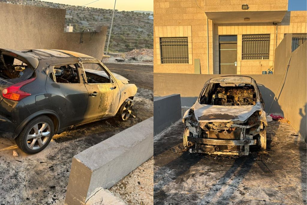 Local sources reported that colonists infiltrated the town at dawn, attacked residents' homes, and set fire to two vehicles, completely burning them. They also spray-painted racist and threatening graffiti on the outer wall of one of the homes.