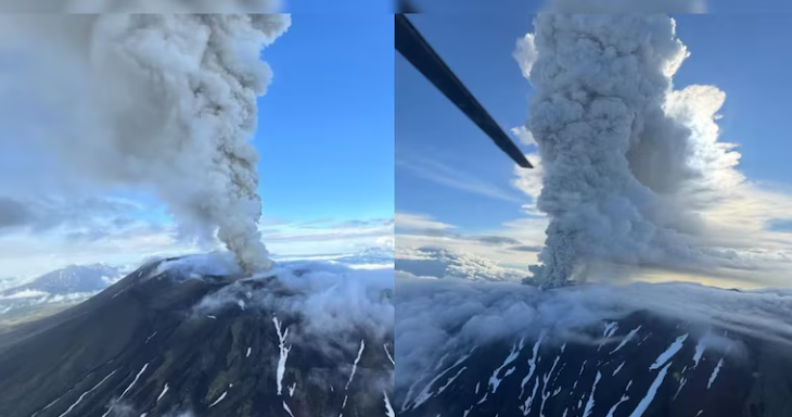 She added that the eruption may be connected to the earthquake on Wednesday that triggered tsunami warnings as far away as French Polynesia and Chile, and was followed by an eruption of Klyuchevskoy, the most active volcano on the Kamchatka Peninsula.