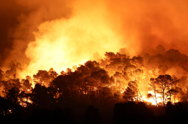 The blaze, around 100 km from the border with Spain, not far from the Mediterranean Sea, began on Tuesday and has spread rapidly.