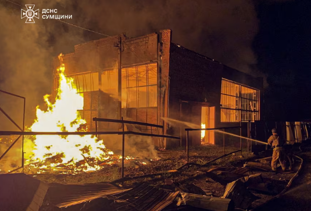 Russia launched 15 drones in an assault on the Okhtyrka area in the early hours of Wednesday, local prosecutors said on the Telegram messaging app.