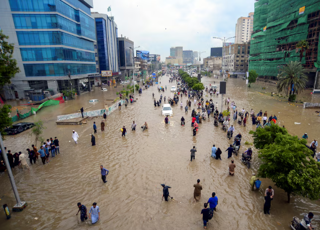 Ammon News - Pakistan declared a public holiday in Karachi on Wednesday as the financial capital braced for more rain, after the arrival of the annual monsoon season left at least 7 people dead and caused widespread flooding, officials said.