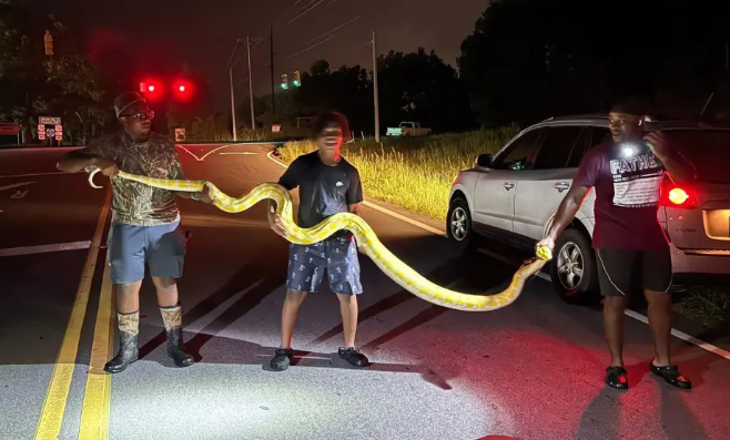 Ammon News - A monster python on the loose in South Carolina was caught steps from a local high school Monday night — and it took three brave souls to wrangle the beast back into captivity.
