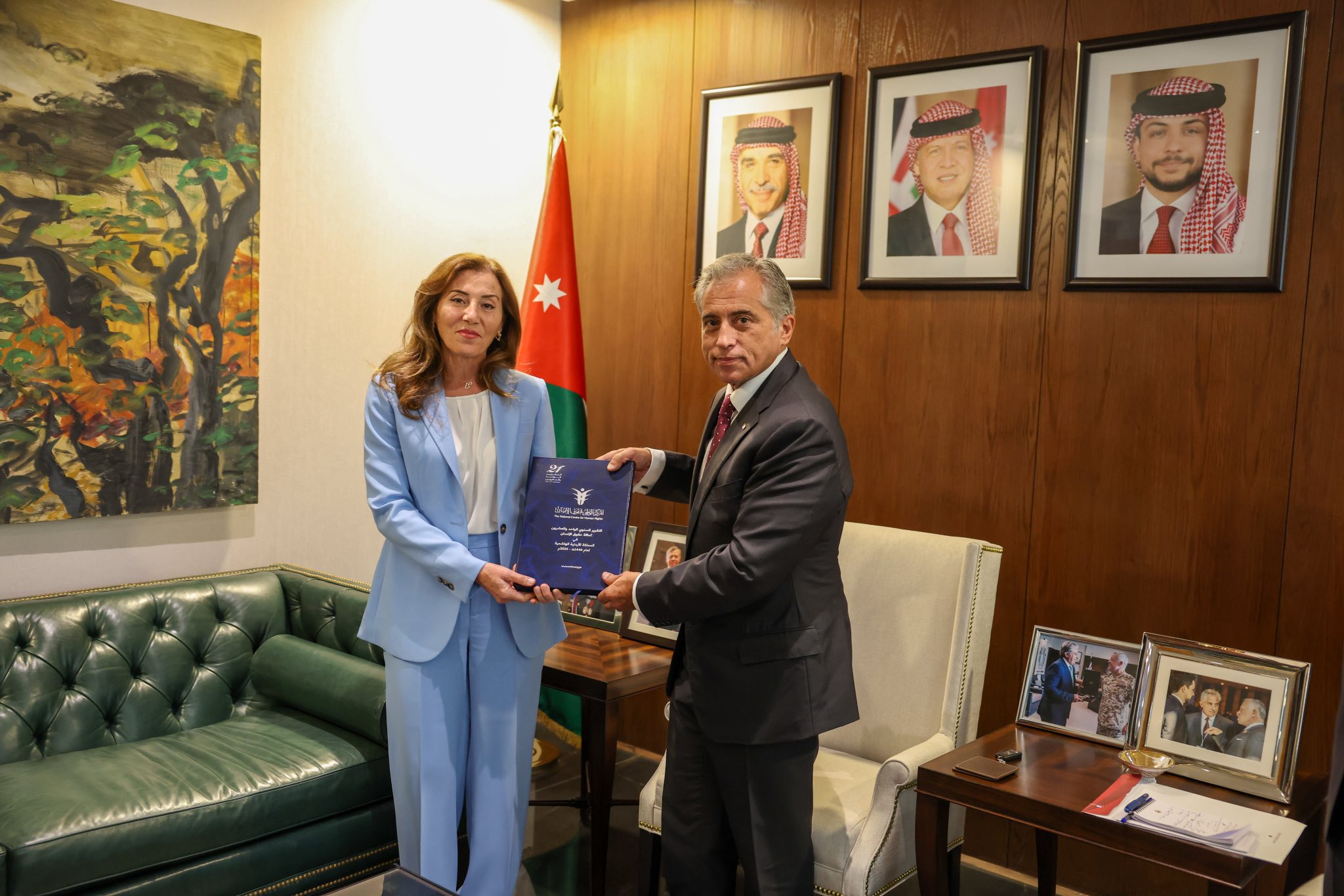 Ammon News - Prime Minister Dr. Jafar Hassan on Sunday received the 21st annual report on the state of human rights in the Kingdom for 2024 from Chair of the Board of Trustees of the National Center for Human Rights Samar Haj Hassan.