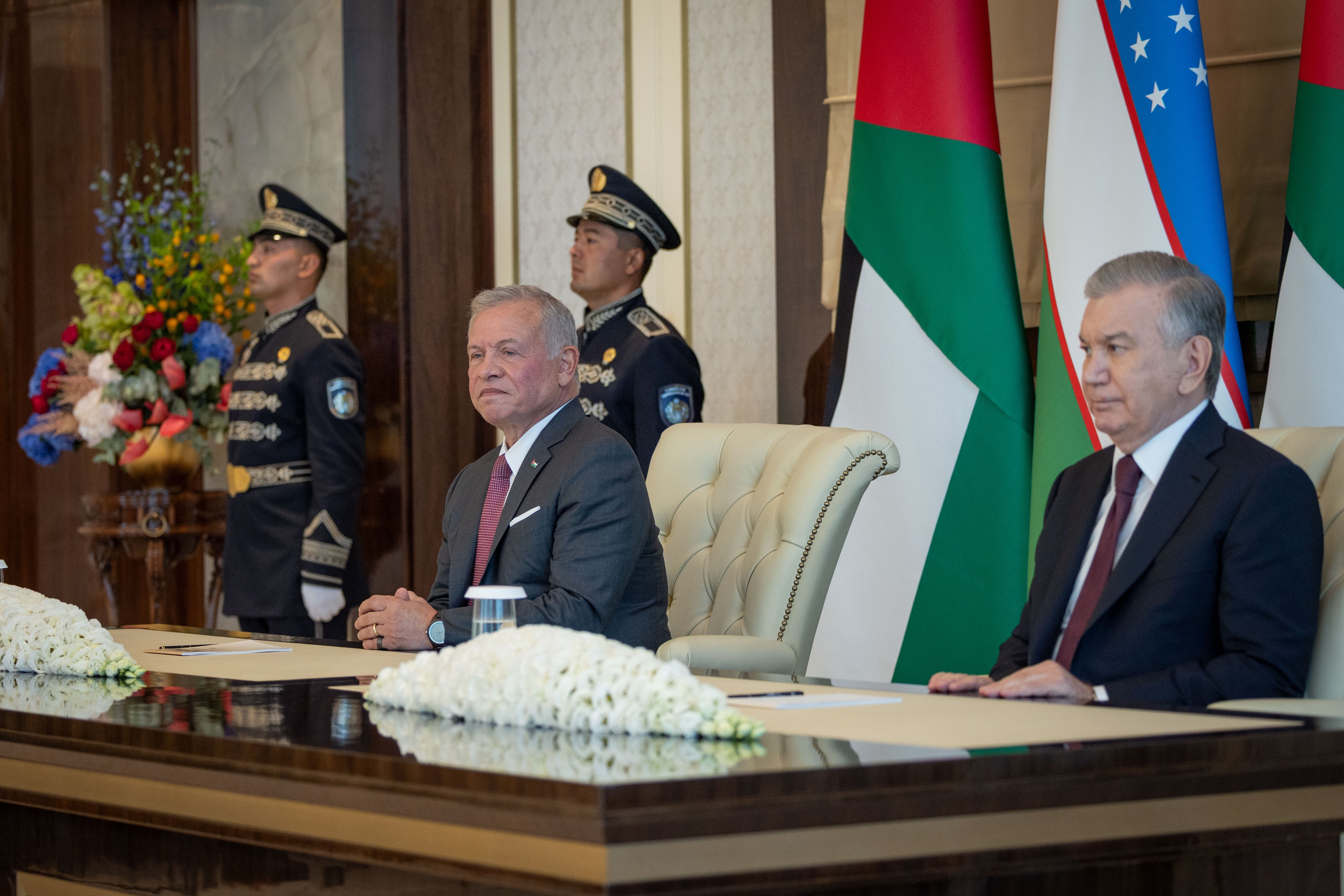 Ammon News - The Hashemite Kingdom of Jordan and the Republic of Uzbekistan issued a joint statement on Tuesday following expanded talks between His Majesty King Abdullah II and President of the Republic of Uzbekistan Shavkat Mirziyoyev in the city of Samarkand.
