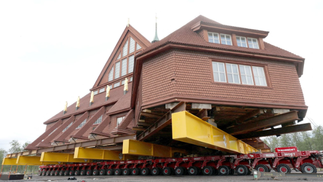 They are the latest buildings to be moved from the current location of Kiruna - Sweden's northernmost city, which is around 124 miles inside the Arctic Circle.