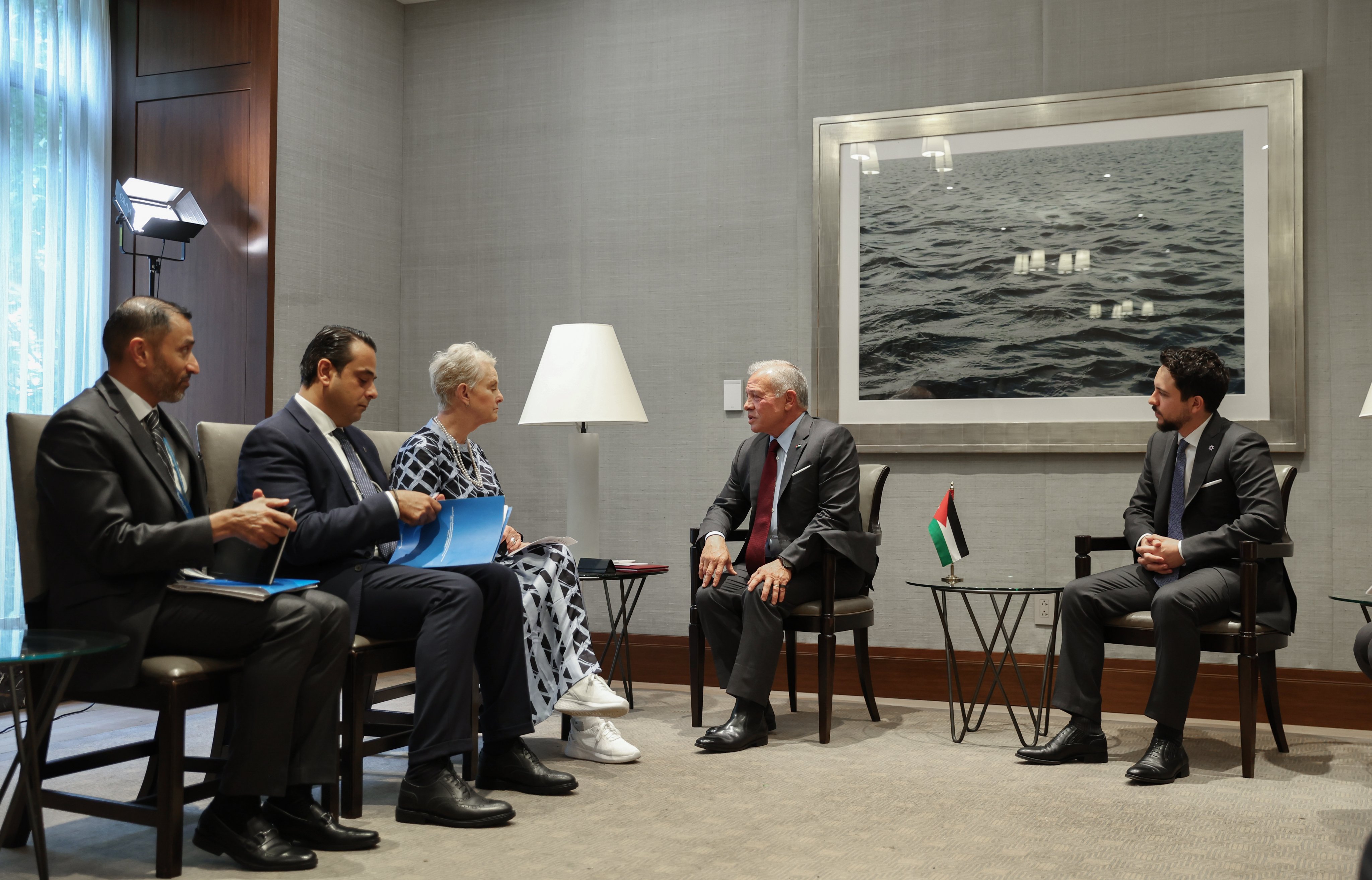 His Majesty also met with Executive Director of the United Nations World Food Programme Cindy McCain to discuss ways to enhance cooperation between Jordan and the WFP, particularly in securing the food needs of Syrian refugees and host communities.