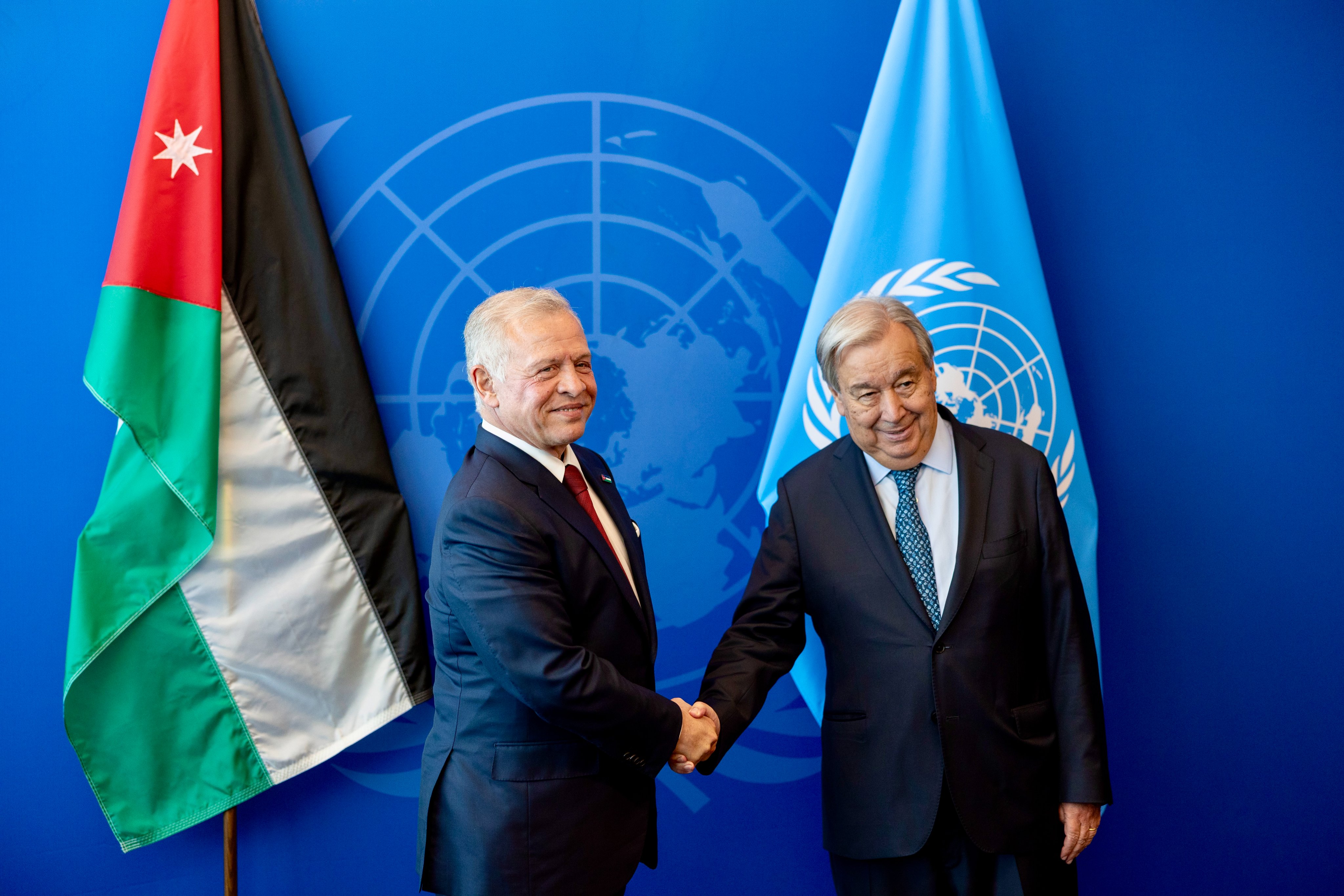 Ammon News - His Majesty King Abdullah II, during a meeting with United Nations Secretary-General António Guterres in New York on Tuesday, called on all countries to put a stop to the humanitarian tragedy in Gaza.