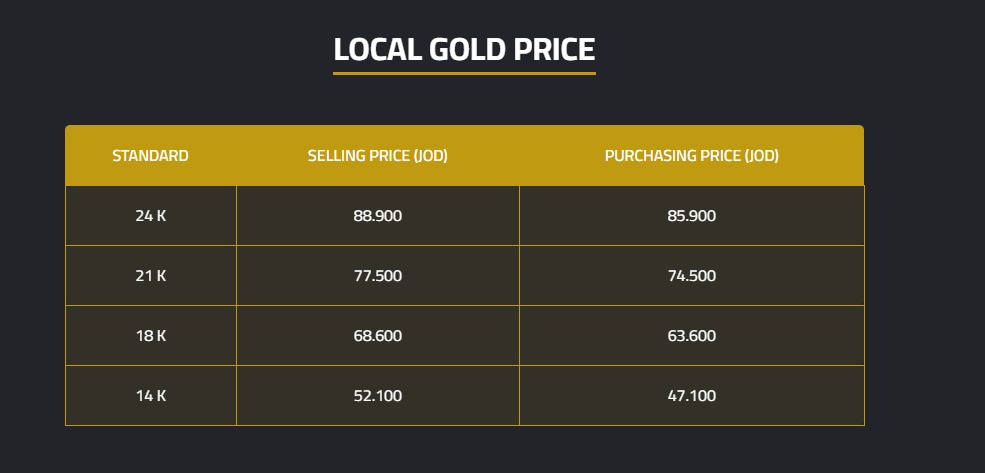 The selling price of 21-karat gold—the most demanded by citizens—reached JD 77.50 per gram when sold from jewelry shops, compared to JD 74.50 for purchasing purposes.