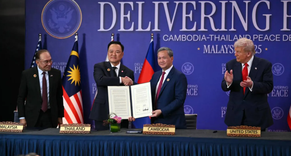 The ceasefire, following a bloody border dispute, was signed by Thai Prime Minister Anutin Charnvirakul and Cambodian Prime Minister Hun Manet, as well as Trump and Malaysian Prime Minister Anwar Ibrahim, said AFP.