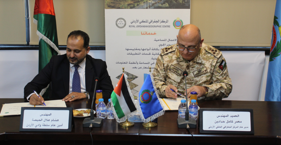 Ammon News - The Royal Jordanian Geographical Center (RJGC) and the Jordan Valley Authority (JVA) signed a memorandum of understanding (MoU) on Tuesday to strengthen cooperation in geospatial data, surveying, and remote sensing applications.