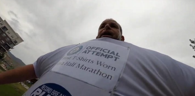 Ammon News - A serial Guinness World Record-breaker took on a half marathon in Idaho while wearing 137 T-shirts 48 pounds of shirts.