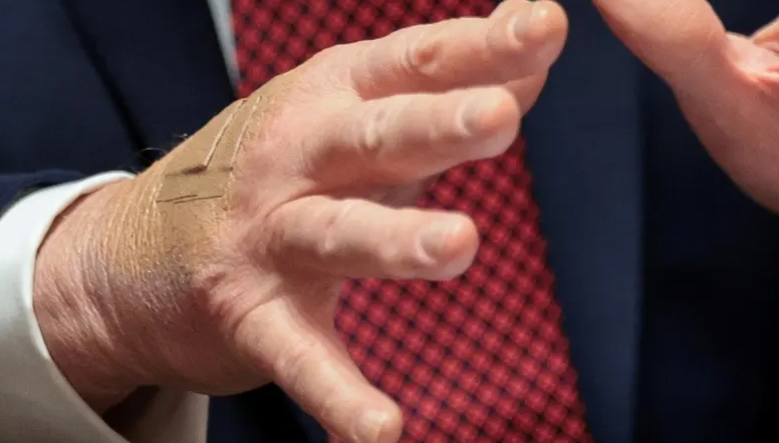 Ammon News - The White House said Thursday the high volume of handshakes by President Donald Trump explains the adhesive bandages he has worn on the back of his right hand in recent days.