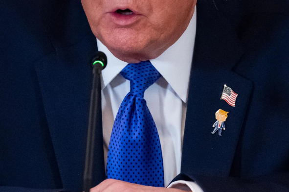 Ammon News - Donald Trump wore an accessory resembling a miniature version of himself during a recent press conference.