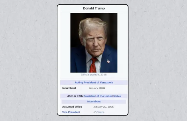 On his social media company Truth Social, Trump posted himself as the acting leader of the South American country as of January 2026.