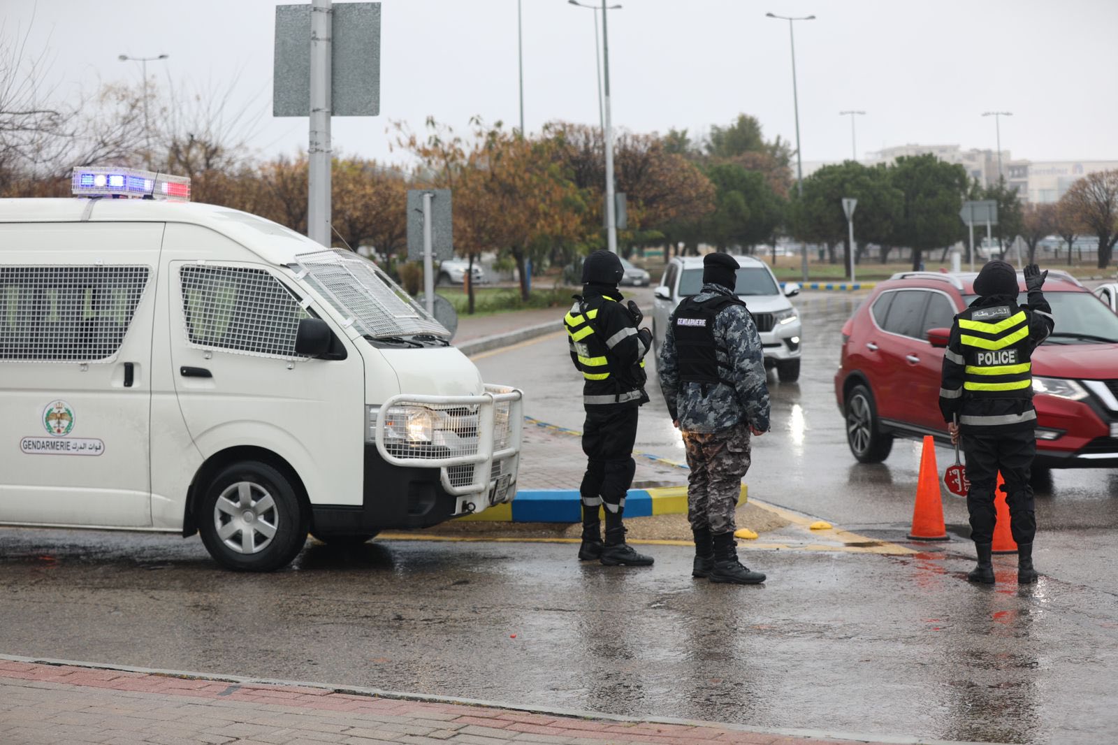 Captain Mahdi Al-Hamoud stated to Amen FM that traffic movement is proceeding normally, noting that moderate to heavy rainfall is affecting several routes, including the Irbid–Amman, Mafraq–Irbid, Mafraq–Zarqa, and North Shuna–Irbid roads.