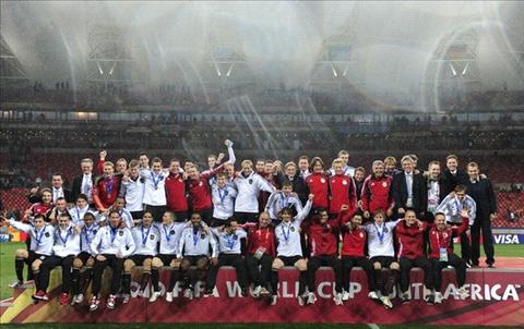 **Getty Image: Germany's national football team players pose with their bronze medals after they won the 2010 World Cup third place football match Uruguay vs. Germany on July 10, 2010 at Nelson Mandela Bay stadium in Port Elizabeth.
