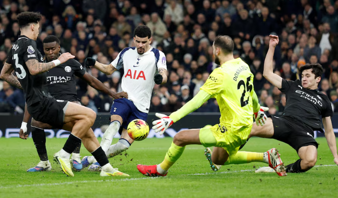 Ammon News - Manchester City and Aston Villa both slipped up in their pursuit of Premier League leaders Arsenal on Sunday with City drawing 2-2 at Tottenham Hotspur and Villa slumping to defeat at home to 10-man Brentford.