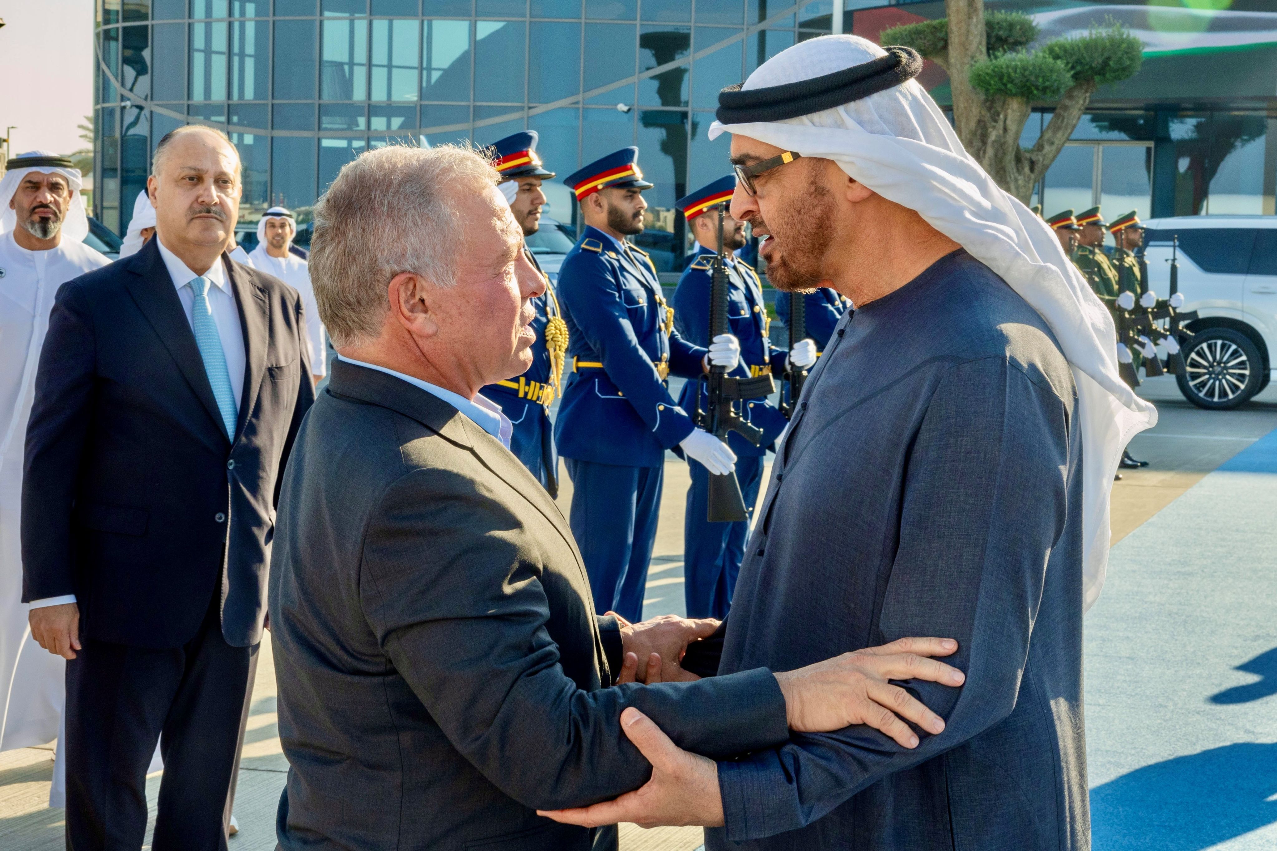 Ammon News - His Majesty King Abdullah II and United Arab Emirates President Sheikh Mohamed bin Zayed Al Nahyan discussed the latest developments in the region during a phone call on Monday.