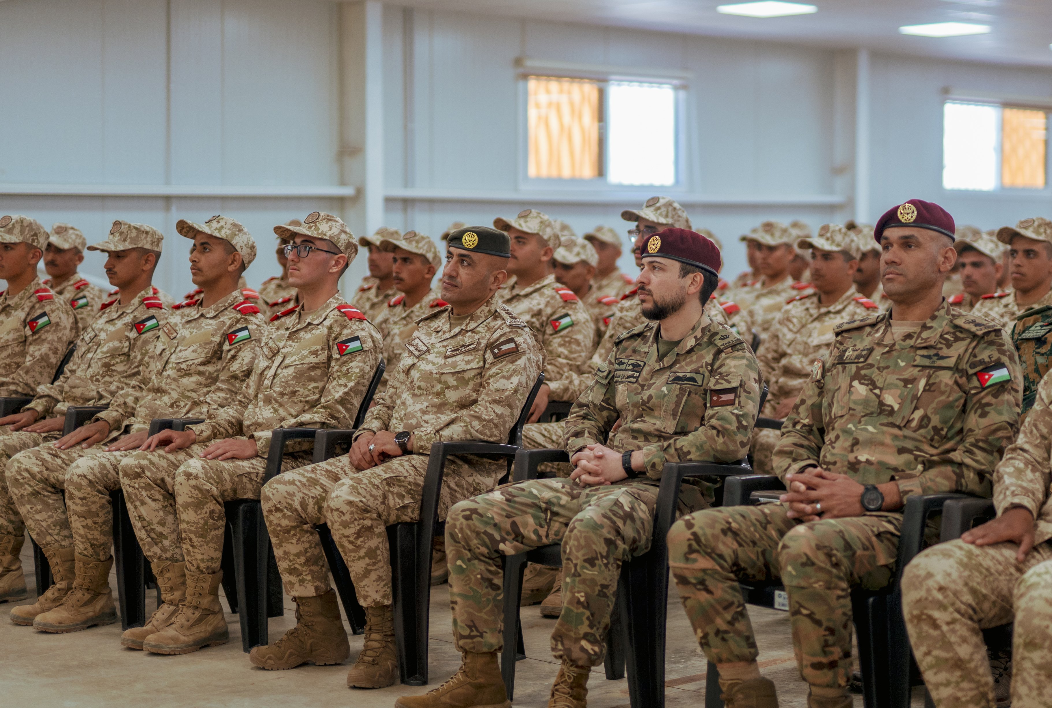 The Crown Prince toured the training centre’s facilities, and was briefed on its training fields and the equipment used, expressing appreciation for the efforts of the Jordan Armed Forces-Arab Army in implementing the National Service training programme at the highest standards of professionalism.