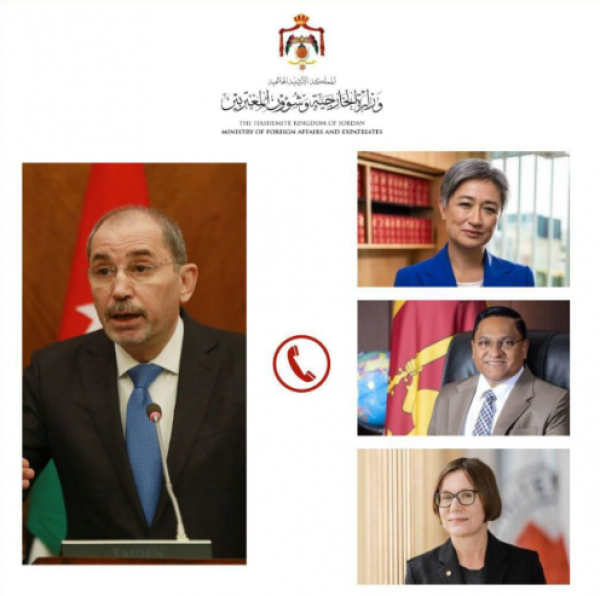 Ammon News - Minister of Foreign Affairs and Expatriates Ayman Safadi received phone calls on Wednesday from Australian Foreign Minister Penny Wong, Sri Lankan Minister of Foreign Affairs, Overseas Employment and Tourism Vijita Herat and President of the International Committee of the Red Cross (ICRC) Mirjana Spoljaric.